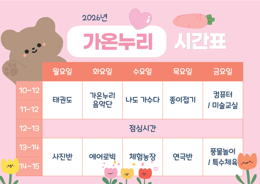 2026년도 1학기 가온누리평생학교 시간표 및 프로그램 안내